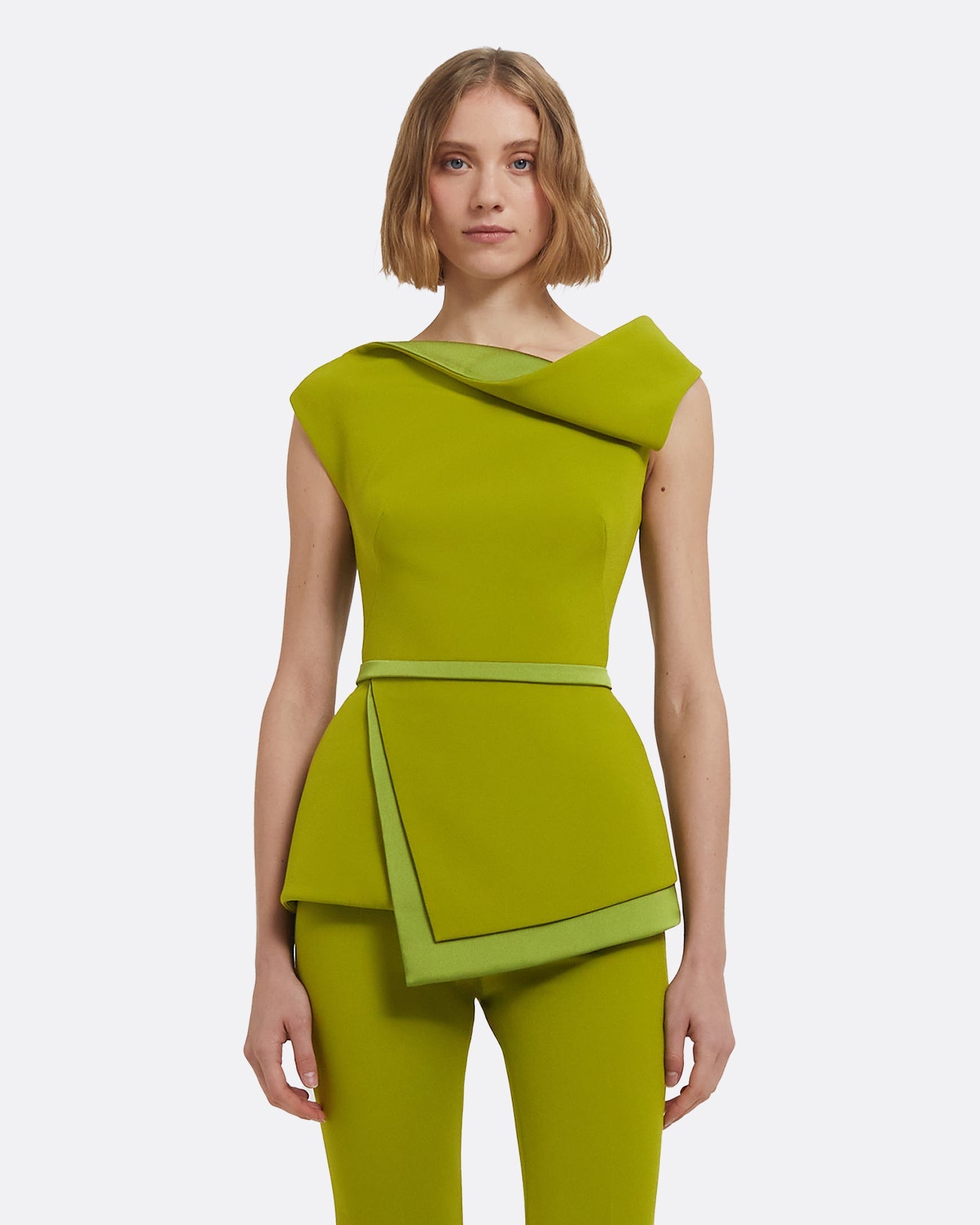 From the Pre-Fall '25 collection, the Farrah top in woodbine blends sculptural form with refined details for a timeless expression of elegance.