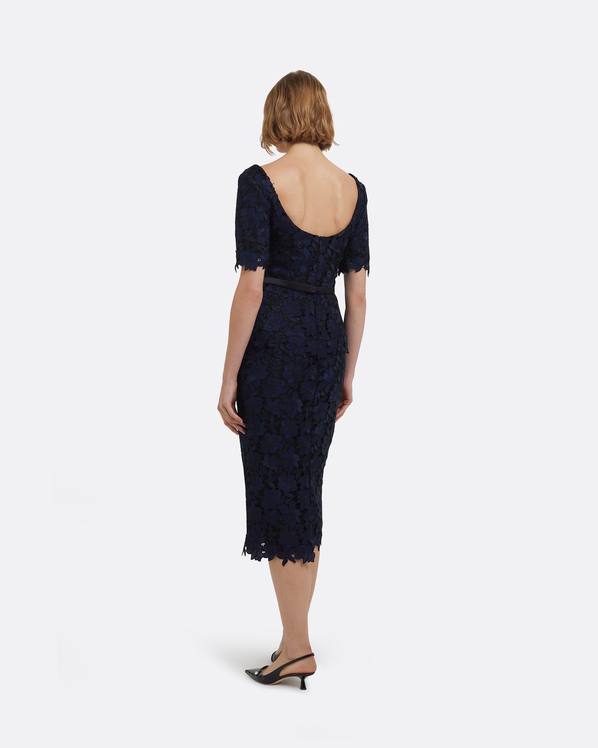 From the Pre-Fall '25 collection, the Lacey top in black and navy on black with gunmetal conveys a sculpted clarity. Its defined lines and considered contrasts bring strength and polish to the silhouette, offering a precise counterpoint to softer tailoring.