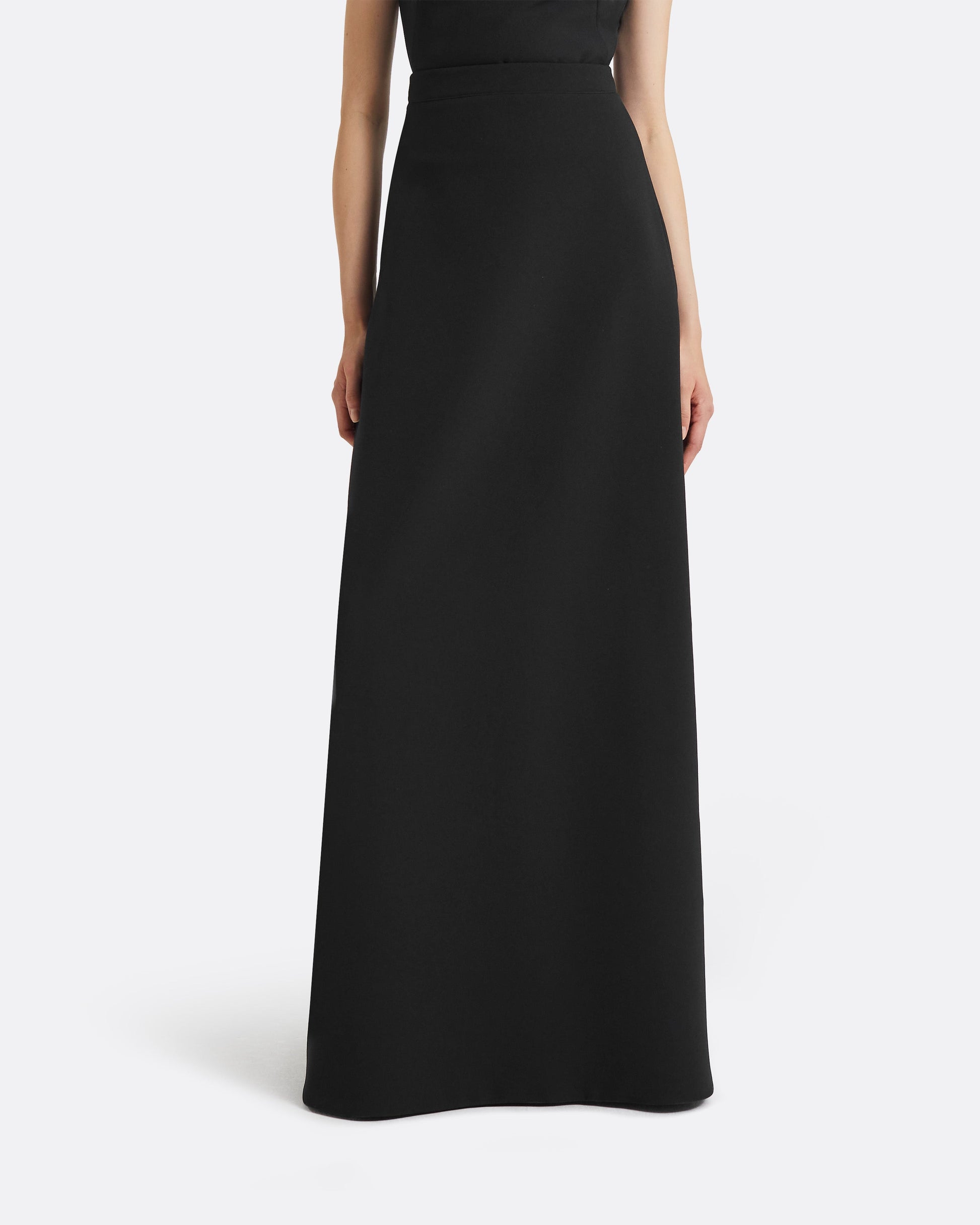 High Waisted A-line Long Skirt in black Heavy Crepe.