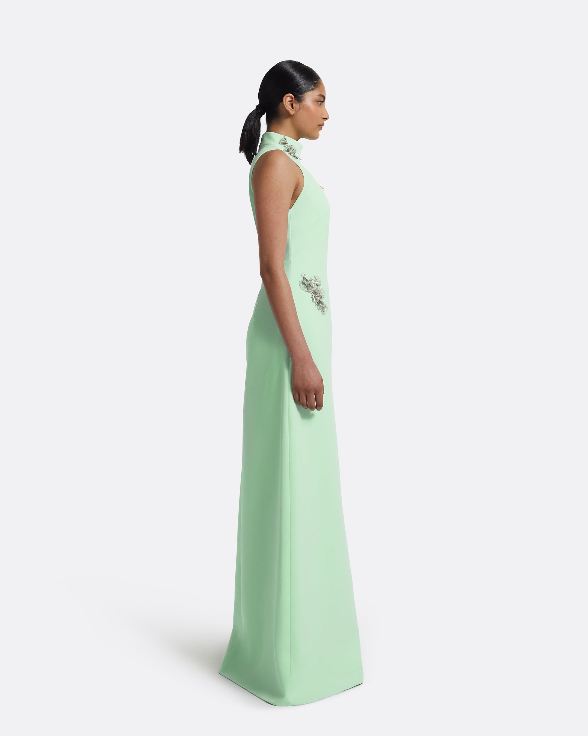 • High neck sleeveless gown